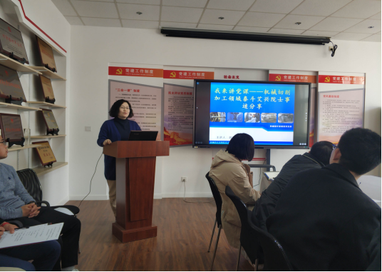 胡玉景老师通过 “加工领域泰斗艾兴院士事迹分享”, 回顾了艾兴院士忠心报国、无私奉献的非凡人生,追思他对党忠诚、献身科学、爱岗敬业、淡泊名利的崇高追求和高尚品格,号召大家自觉加强理论武装,筑牢理想信念,提升品行作风,强化担当作为,为建设高水平综合大学而不懈努力。