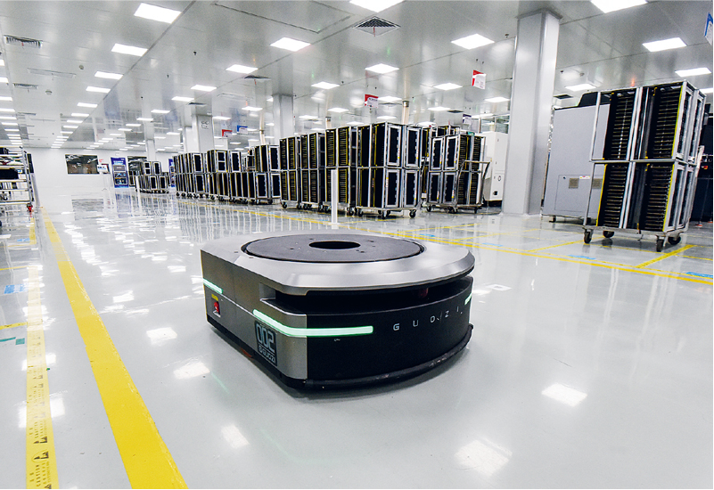 5G技术是新一代移动通信技术发展的主要方向,是迈向数字经济时代的重要基础设施。图为2020年5月16日,位于荆州的湖北美的电冰箱有限公司电子分厂,自动导引运输车依托5G技术在智能化运行。 人民图片 黄志刚/摄