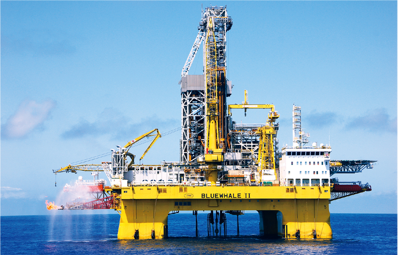 高端装备体现着一国制造业的核心竞争力。在水深1225米的海域,我国一举攻克深海浅软地层水平井钻采核心技术,成为全球首个采用水平井钻采技术试采海域天然气水合物的国家。图为2020年3月1日拍摄的第二轮试采平台“蓝鲸2号”。 新华社发(广州海洋地质调查局供图)