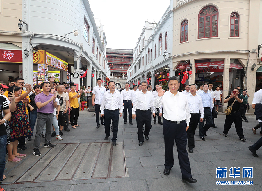 10月12日至13日,中共中央总书记、国家主席、中央军委主席习近平在广东考察。这是12日下午,习近平在潮州古城牌坊街考察时,向群众挥手致意。 新华社记者 王晔 摄