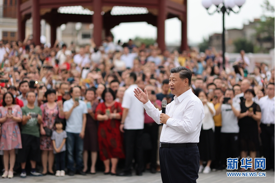 当地群众和游客们见到总书记来了,争相围拢上来向总书记问好。习近平祝大家生活愉快、健康幸福。他指出,我国改革开放和经济特区的建设同大批心系乡梓、心系祖国的华侨是分不开的。我们即将全面建成小康社会、开启全面建设社会主义现代化国家新征程,向第二个百年奋斗目标进军。到本世纪中叶把我国建成富强民主文明和谐美丽的社会主义现代化强国,是海内外全体中华儿女的共同心愿。今年是经济特区建立40周年,我特地来汕头经济特区考察调研,就是要向国内外宣示,中国共产党领导中国人民将坚定不移走改革开放道路,奋发有为推进社会主义现代化建设,锲而不舍实现中华民族伟大复兴的中国梦。希望乡亲们携手努力,共同奋斗!