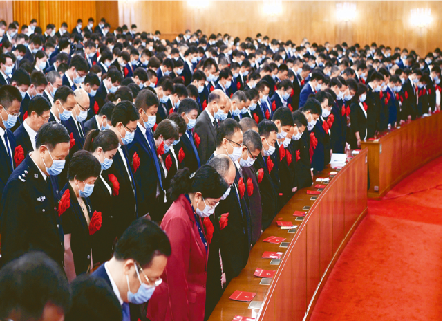 2020年9月8日上午,全国抗击新冠肺炎疫情表彰大会在北京人民大会堂隆重举行。这是全场肃立,向新冠肺炎疫情牺牲烈士和逝世同胞默哀。 新华社记者 申宏/摄