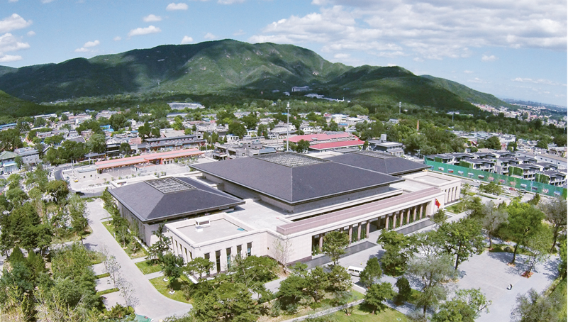 香山革命纪念馆是专门集中展示香山革命历史的重要场馆,于2018年4月23日开始建设,2019年9月13日正式对外开放。纪念馆庄重大气,“四梁八柱”的雨棚造型寓意党中央在香山为新中国搭建“四梁八柱”。图为航拍的纪念馆全景。 香山革命纪念馆供图