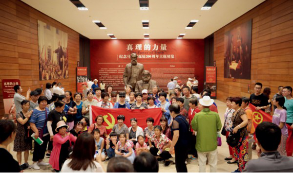 2018年5月4日,习近平总书记在纪念马克思诞辰200周年大会上发表重要讲话,深刻阐述马克思主义作为我们立党立国根本指导思想的长远指导意义。图为观众参观“真理的力量——纪念马克思诞辰200周年主题展览”。图片来源:伟大的变革——庆祝改革开放40周年大型展览