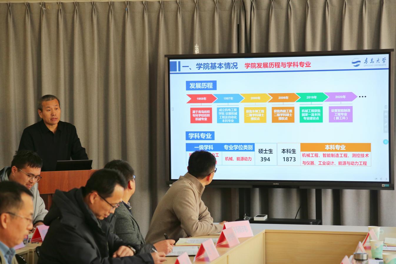 学院党委书记李明伦主持座谈会并汇报近期学院党建引领高质量发展的相关工作,院长李延辉汇报人才培养、师资队伍建设、学科建设、科学研究与服务社会工作情况。学院班子成员副书记赵斐斐、副院长沈辉、蒋荣超结合各自分管工作进行了补充汇报,青年教师王发杰、白硕玮、张传伟作为教师代表汇报了各自科研成长经历。