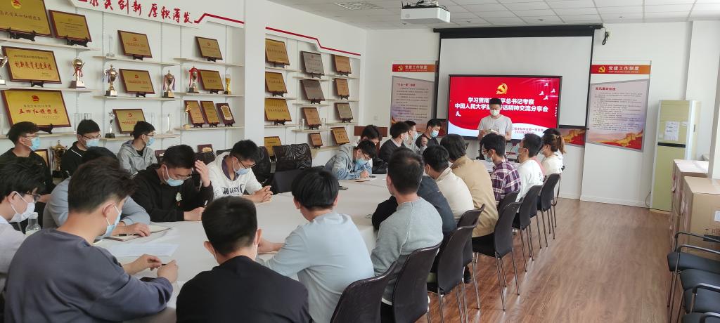 孙万超带领大家共同学习了习近平总书记在中国人民大学考察时的重要讲话,与会党员展开了热烈讨论。大家认为,习近平总书记的讲话饱含了对新时代青年的亲切关怀与殷切期望,大家对自己的的奋斗目标和前行方向有了更加清醒的认识,更加坚定了自己的科技报国理想。大家表示,作为工科专业学生,要牢记习近平总书记嘱托,坚定理想信念,努力锤炼本领,勇挑时代重担,坚定不移听党话、跟党走,让红色信念成为青春远航的动力,立足时代,扎根人民,不畏困难、奋楫争先,将个人小我的追求切实融入到国家和社会发展的大局中,让青春在为祖国、为人民、为民族、为人类的奉献中焕发出更加绚丽的光彩,用实际行动践行“请党放心,强国有我”的铮铮誓言。